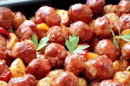Ráda připravuji chutná a vydatná jídla, která se ve výsledku pečou téměř samostatně! Tento recept je přesně tím, co hledáte – kombinuje opečené brambory ve slupce s domácími, ochucenými masovými kulič...